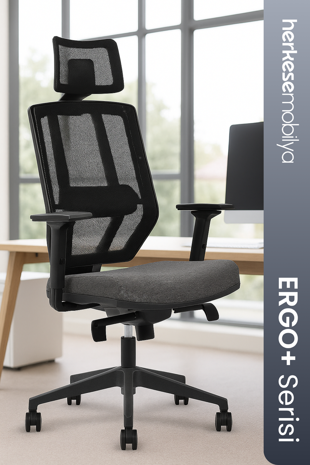 Aero Fileli Yönetici Çalışma Koltuğu, modern ofis ve yönetici alanları için özel olarak tasarlanmış, siyah fileli sırt yapısı, antrasit gri kumaş oturma yüzeyi ve kapsamlı ergonomik özellikleriyle öne çıkan premium bir ofis koltuğudur. Ayrılabilir baş desteği, özel file tasarımı ve minimalist siyah detaylarıyla profesyonel çalışma alanlarına çağdaş bir sadelik katan bu koltuk, uzun saatler süren çalışmalarda maksimum konfor ve şık bir estetik sunar.
