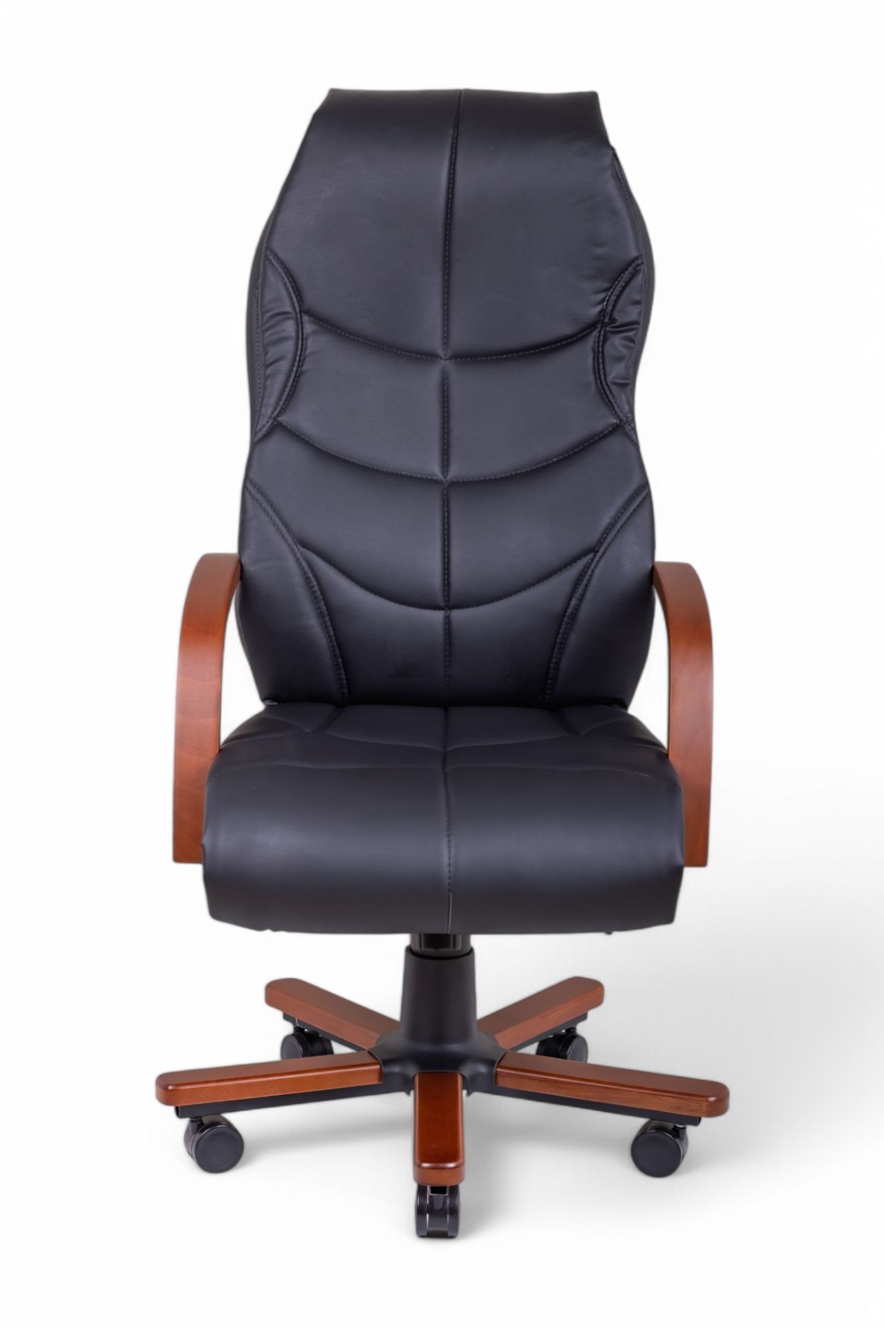 ARON Siyah Deri Yönetici Koltuğu, modern ofis ortamları için tasarlanmış premium bir seçenektir. Yüksek sırtlı yapısı ve ergonomik tasarımı sayesinde uzun çalışma saatlerinde maksimum konfor sağlar. Siyah deri kaplama, hem şık bir görünüm sunar hem de dayanıklılık açısından üstün performans gösterir. Ahşap kolçak detayları, koltuğa zarif bir dokunuş katar ve kullanım sırasında ekstra destek verir. Bu koltuk, yönetici odaları veya makam alanları için ideal olup, profesyonel bir imaj yaratmaya yardımcı olur.