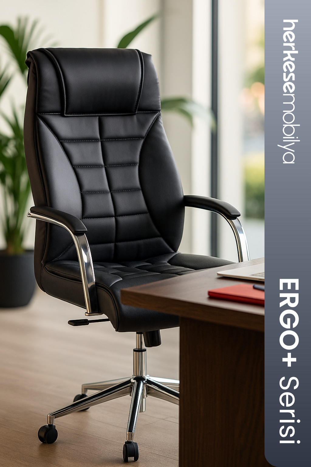 Ergonomik tasarım ve premium deri kaplama ile ofis konforunu zirveye taşıyan Yönetici Koltuğu.