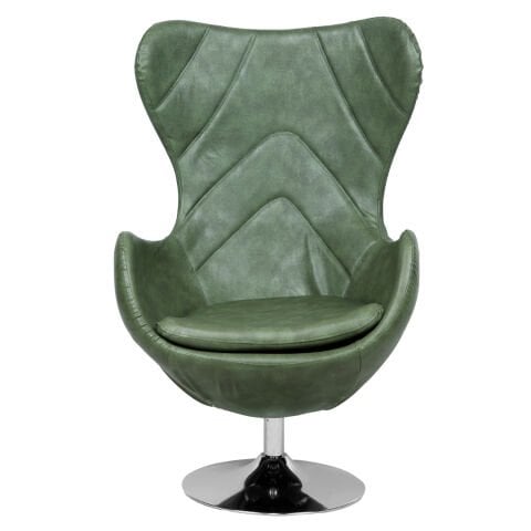Egg Yeşil Deri Berjer Bekleme Koltuğu Tepsi Ayak