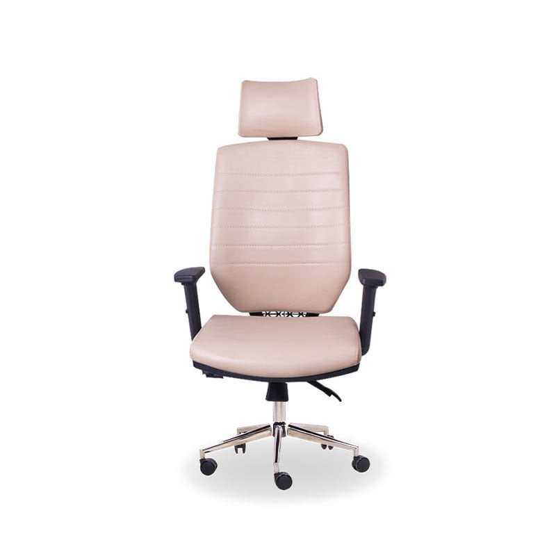 • Temiz ve zarif hatları ile çağdaş bir tasarım dili yansıtır • Ayarlanabilir baş desteği ile hem konfor hem de estetik bir görünüm sağlar • Ergonomik şekillendirilmiş sırt desteği ile vücut hatlarınıza mükemmel uyum • Parlak krom beş kollu taban ile lüks ve modern bir duruş sergiler • Siyah kolçaklar ile bej derinin yumuşaklığında şık kontrast yaratır