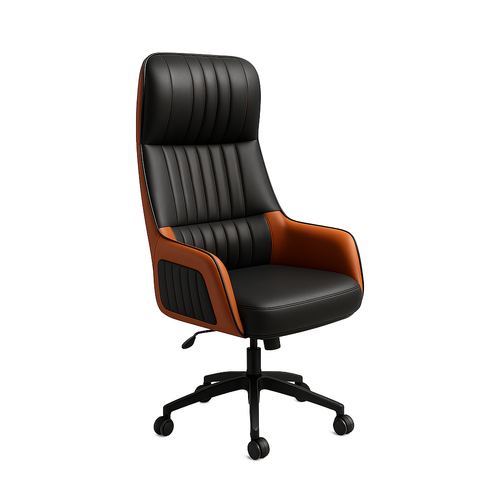 Holly Yönetici Koltuğu, modern liderlerin ofisleri için tasarlanmış, estetik ve konforu bir araya getiren prestijli bir modeldir. Göz alıcı çift renkli tasarımı, siyah ve kahverenginin (taba) mükemmel uyumunu sergilerken, dikey dikiş detayları koltuğa karakteristik bir dokunuş katmaktadır. Yüksek kaliteli deri kaplaması, hem lüks bir his sunar hem de kolay temizlik ve uzun ömürlü kullanım imkanı sağlar.