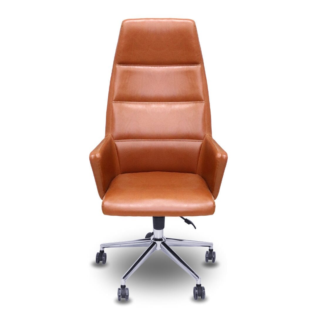 Yatay dikiş detaylarıyla hareketlendirilen yüksek sırt yapısı, omuz ve sırt bölgesini tam kavrayarak gün boyu ergonomik bir destek sağlar. Parlak krom yıldız ayağı, taba rengi deri ile modern bir kontrast oluşturur ve tasarıma hafiflik katar. West Yönetici Koltuğu, hantal olmayan, estetik ve fonksiyonel bir makam koltuğu arayanlar için mükemmel bir alternatiftir.